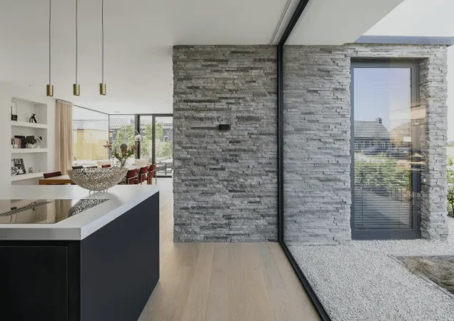 Generous amounts of south facing glazing maximize the solar gains for most of the year.
